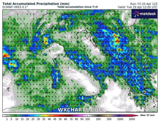 Secondo gli esperti, il cambiamento di temperature dipenderà dalle correnti d’aria calda in arrivo dall’Africa, in particolare dal deserto del Sahara, che investiranno l’Italia e tutta la zona mediterranea. È grazie a queste correnti che arriverà un assaggio d’estate, con punte anche di 30 gradi. Le zone dove le temperature si alzeranno maggiormente saranno il Nord e il centro, in particolare lungo il versante tirrenico (fino alla Puglia), dove le medie stagionali potrebbe alzarsi anche di 6-7 gradi centigradi. Le previsioni dovranno conferma nei prossimi giorni, ma c’è motivo di sperare in un ponte del Primo maggio pieno di sole. Dopo, però, potrebbe tornare il maltempo.